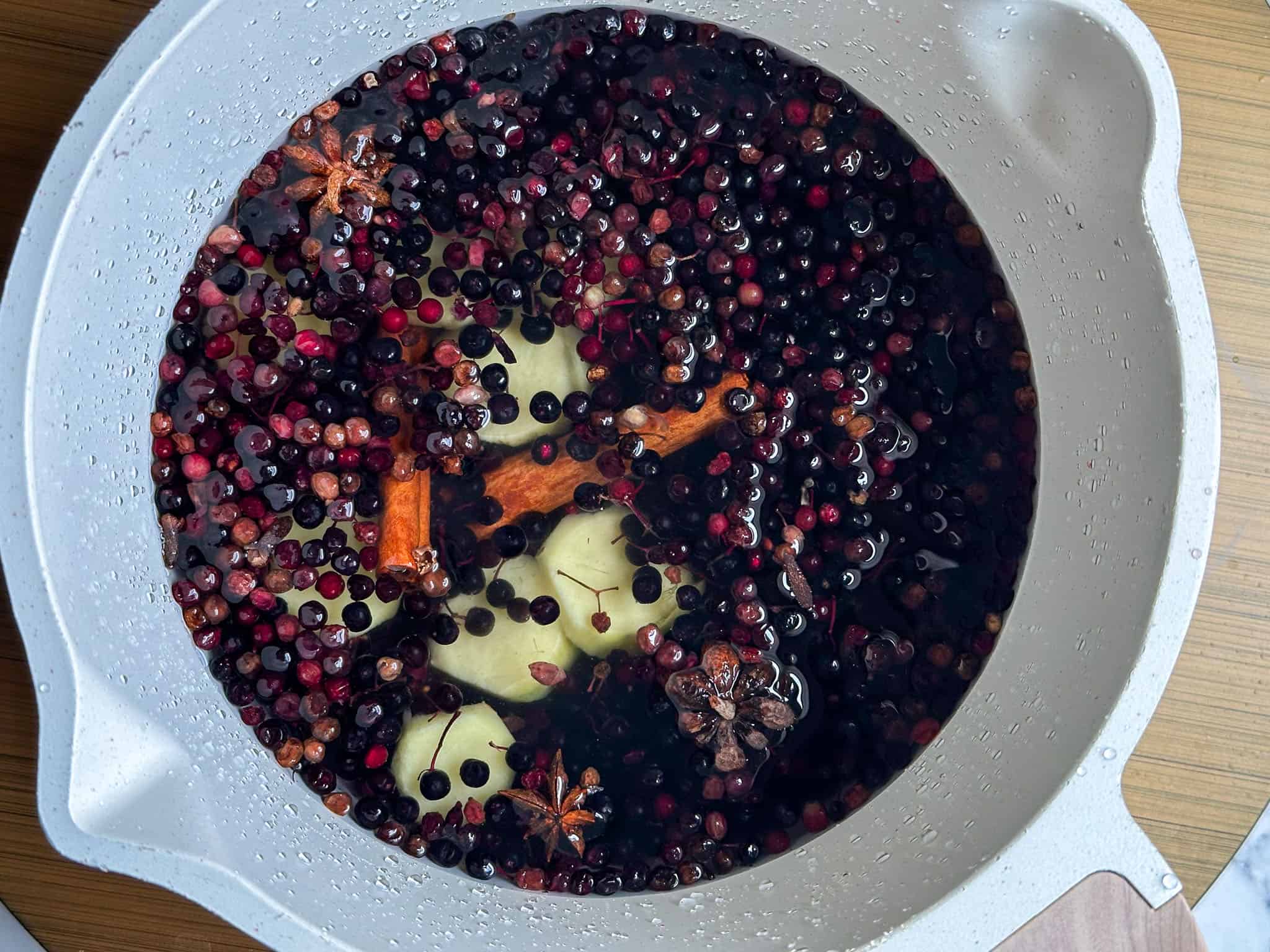 - Water – Acts as the base, gently extracting the nutrients and flavors from the berries and spices.